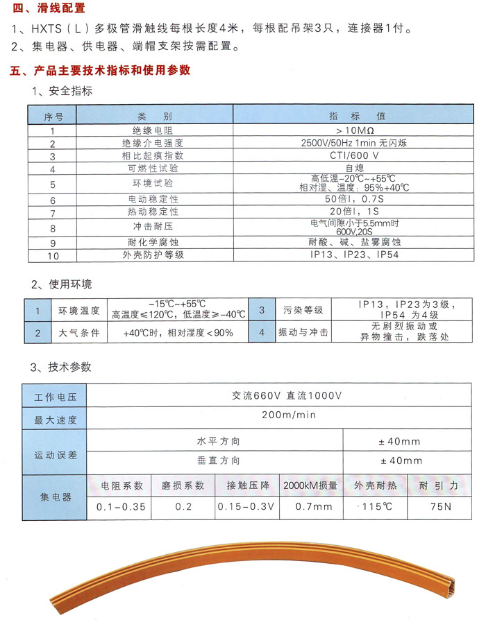 HXTS、HXTL系列多極管式滑觸線由高強度工程塑料絕緣導管或鋁合金保護殼、多級導電銅排、集電器以及懸吊、固定等組件組合而成。該產品以其設計緊湊、性能穩定、使用安全的特點被廣泛地應用于電流較小、使用頻率較高的物流自動化流水生產線以及檢測線。